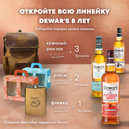 Откройте всю линейку Dewar’s 8 Years Old — с подарками за каждую покупку
