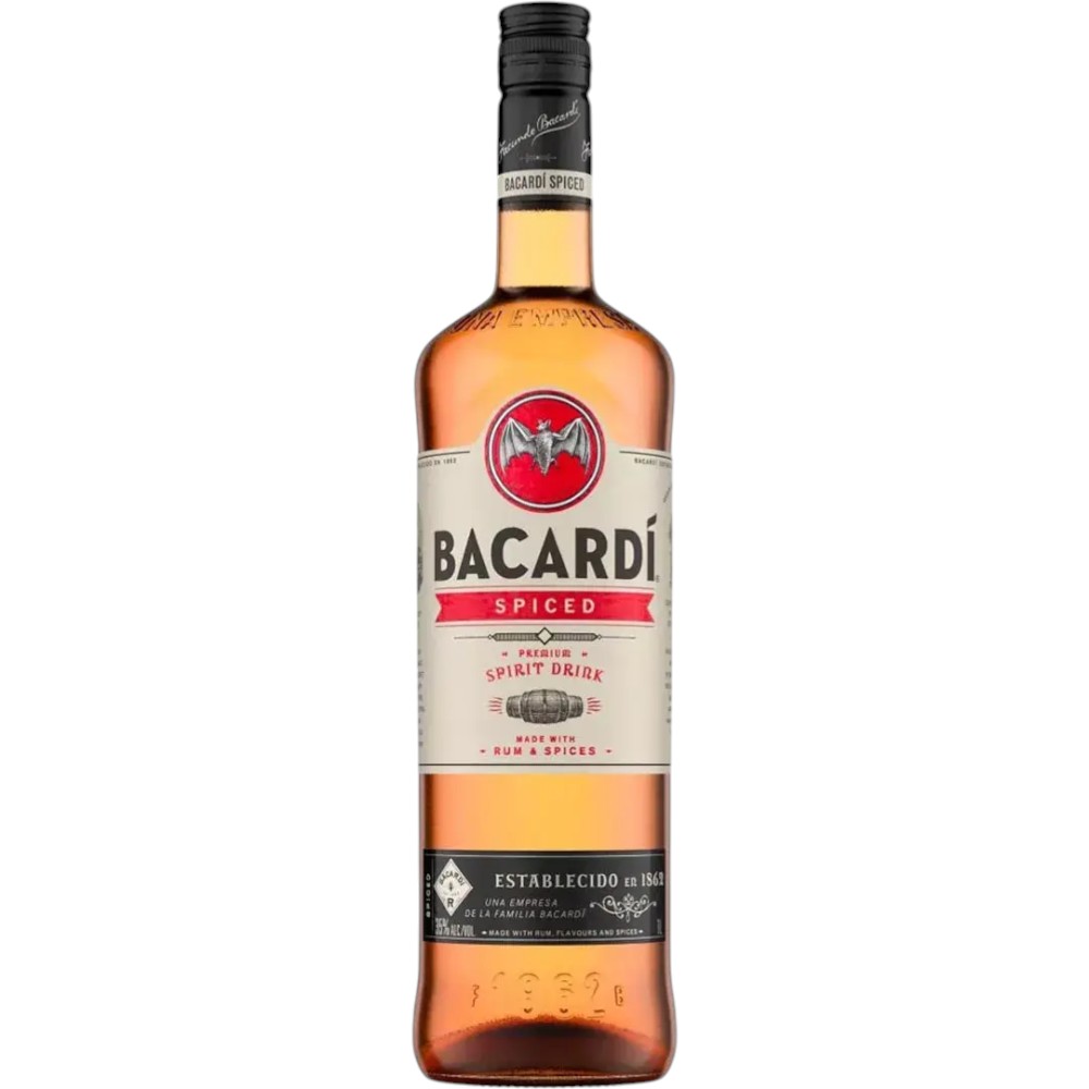Bacardi Spiced — ароматизированный ром со специями, созданный легендарным брендом Bacardi, основанным в 1862 году и известным своим новаторским подходом к производству рома. В основе напитка — выдержанный ром Bacardi, дополненный натуральными экстрактами специй и ванили, что формирует яркий, насыщенный и легко узнаваемый характер. Bacardi Spiced сочетает традиции карибского рома с современной интерпретацией вкуса и идеально подходит для коктейлей и миксов.