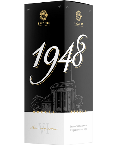 Коньяк Bacchus 1948 6 Years Old — выдержанный казахстанский коньяк, произведённый компанией Bacchus JSC, одним из известных производителей вин и крепких напитков в Kazakhstan. Название «1948» отсылает к историческим традициям предприятия и многолетнему опыту производства коньяков, основанному на классических технологиях выдержки виноградных спиртов.