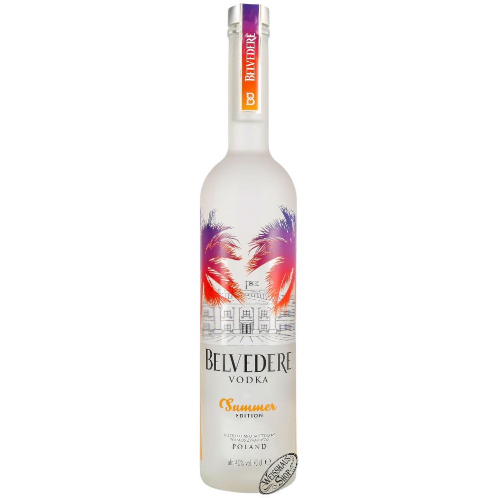 Водка Belvedere была выпущена в 1993 году компанией Polmos Zyrardów, расположенной в небольшом польском городке, носившем ее название. Бельведер перегоняется с использованием воды из близлежащего озера Живец. Бельведер назван в честь дворца Бельведер в Варшаве, и это название означает «красивый на вид» — вполне подходящее, учитывая очень характерные бутылки. Для создания водки они используют Данковскую рожь из Польши.Бутылка водки Belvedere Summer Edition — яркая дань сезону, украшенная мотивами пальм и градиентными тропическими оттенками. Эта водка, выпущенная ограниченным тиражом, идеально подходит для любого летнего праздника и обязательно заявит о себе.Во вкусе Belvedere Vodka присутствуют ноты ванили и ржи, послевкусие свежее и чистое с нотками белого перца. Имеет характерное сливочное ощущение во рту. Его аромат представляет собой смесь ванили, ржи и белого перца.