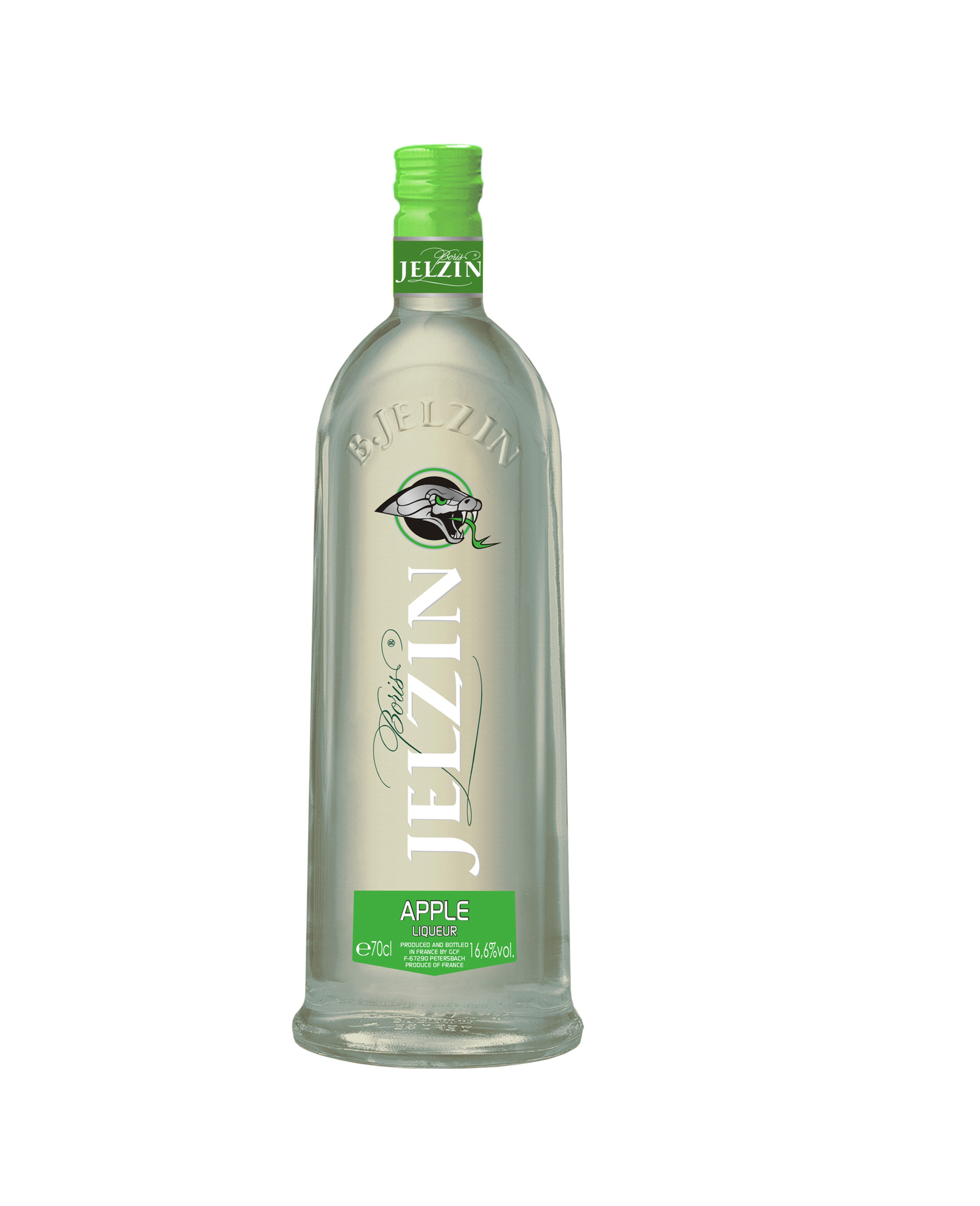 Ликер Boris Jelzin Apple французского производства. Крепость напитка составляет 16.6%. При его создании производители используют чистый спирт высшего качества, мягкую артезианскую воду и специальную уникальную технологию. Спирт, используемый при производстве ликера, проходит трехразовую фильтрацию и очистку с помощью известняка и угля. Употребляют ликер Boris Jelzin Apple в чистом виде со льдом. На его основе создается много интересных оригинальных коктейлей.