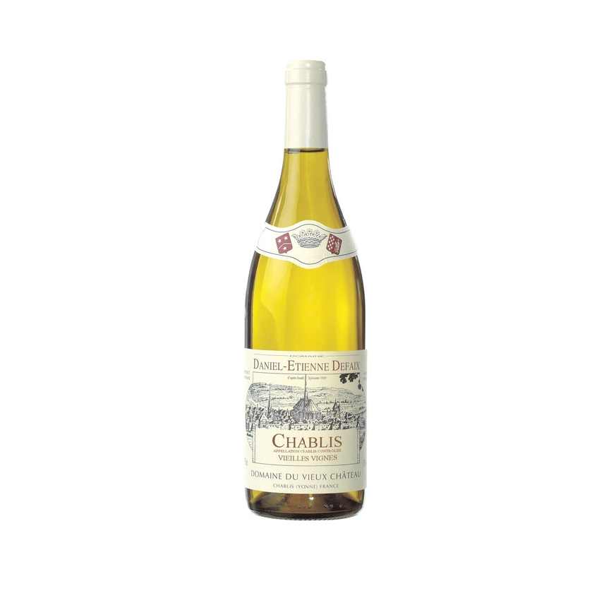 Daniel-Etienne Defaix, Chablis Vieilles Vignes — превосходное, аппетитное, очень сосредоточенное и глубокое вино от одного из лучших производителей Шабли. Вино изготавливается из винограда со старых лоз, возраст которых составляет как минимум 42 года, а в основном превышает 50 лет. Киммериджские почвы, на которых выращивается Шардоне, даруют вкусу вина особую живость и энергичность, а выдержка на дрожжевом осадке в дубовых бочках в течение года придает сложность, плотность и хорошую структуру, благодаря которой вино обладает прекрасным потенциалом хранения.Семья Дефе занимается виноделием на протяжении уже четырех веков, традиции передаются от отца к сыну. Семейное имение располагается на древнейших территориях региона шабли, тысячелетие тому выбранные монахами Понтиньи для виноделия. Домен Daniel-Etienne Defaix охватывает 28 гектаров земли, где выращивается отменный Шардоне. Винификация осуществляется с соблюдением обязательных правил, которые по мнению хозяев Домена делают вино уникальным, полно и красноречиво представляя терруар Шабли. Урожай собирают по достижению оптимальной зрелости, подвергают медленному прессованию в течение трех часов. Спиртовое брожение длится три недели и осуществляется на естественном осадке при низких температурах, чтобы сохранить естественную полноту вкуса и ароматность ягод. Систематическая малолактическая ферментация необходима для того, чтобы избежать рисков сбраживания готового вина в бутылке. До того, как поступить в продажу, вина в обязательном порядке выдерживаются от 6 до 12 месяцев. Продолжая семейную традицию, нынешний хозяин имения Даниель-Этьен Дефе делает все возможное, чтобы слава виноделов Дефе не угасала, а фамильное дело, как виноградная лоза давало великолепный результат.