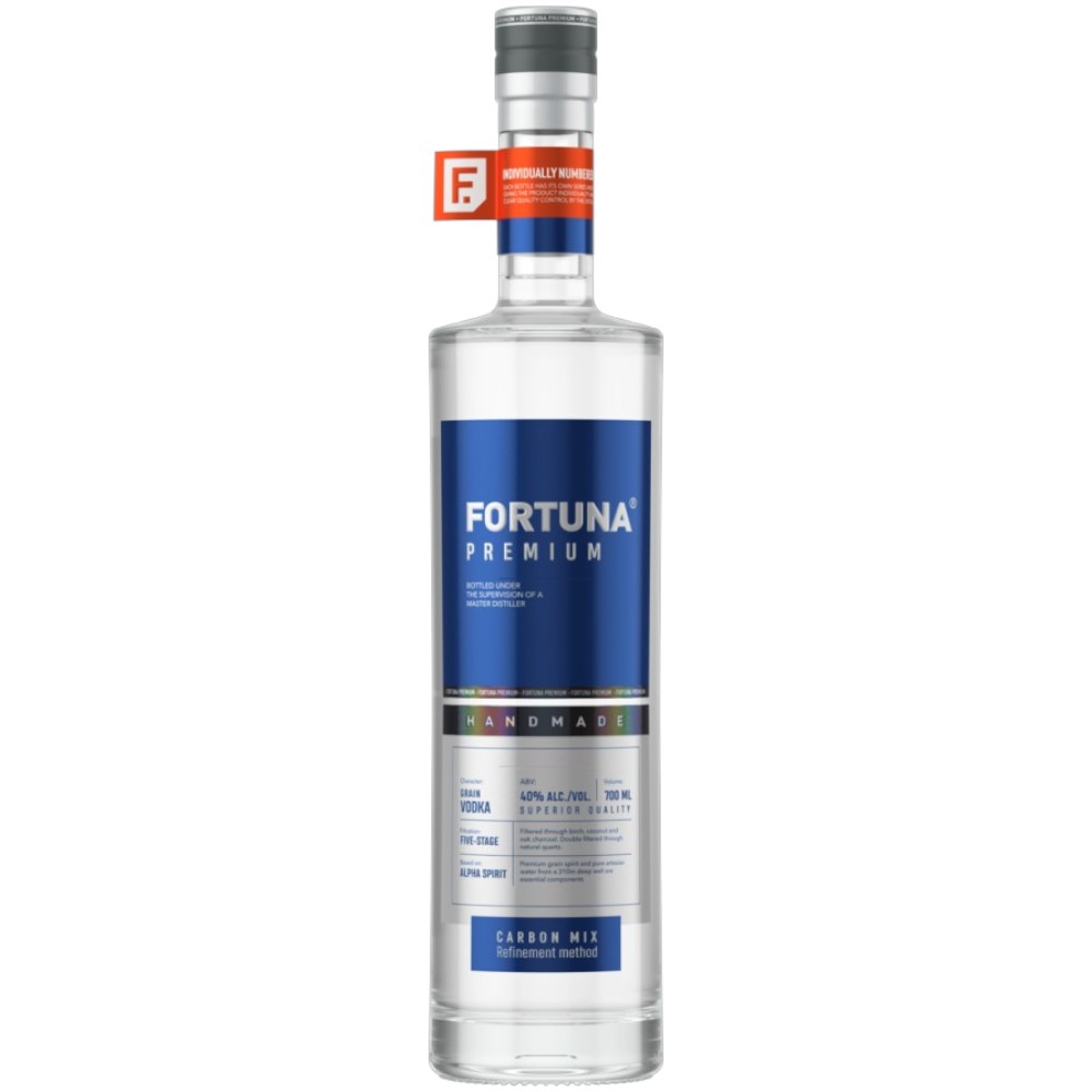 Водку "Fortuna" Premium отличает высокое качество содержащегося в ней спирта. Используемый спирт "Альфа" на сегодняшний день — это продукт высшей степени очистки, прошедший трехступенчатый процесс фильтрации. Первая ступень — фильтрация через кокосовый уголь с обогащением ионами серебра — позволяет очистить от примесей. Вторая — фильтрация через активированный уголь, полученный из кавказского дуба, благодаря которой водка приобретает мягкость и выдержанность. И, наконец, третья — очистка березовым углем, которая придает водке классический русский колорит.