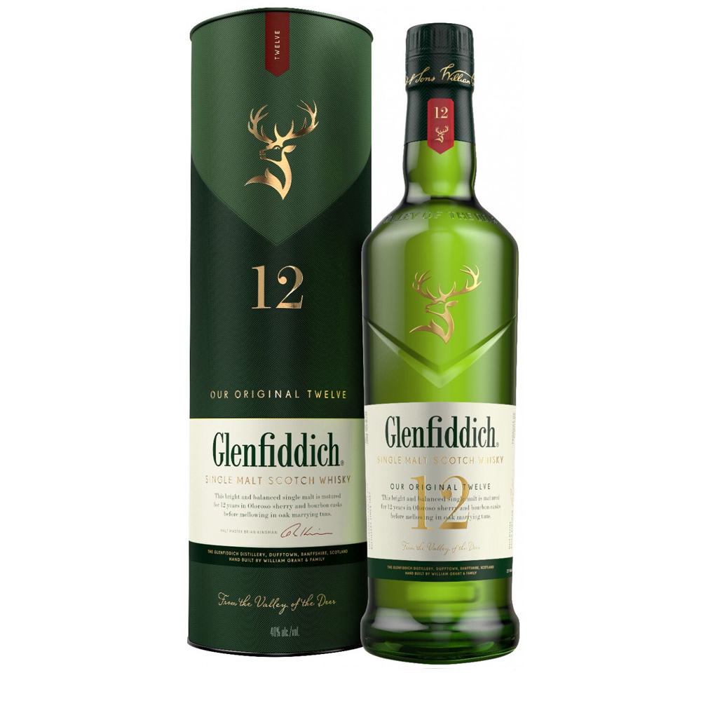 Glenfiddich, 12 Y.O.Glenfiddich, 12 Years Old – популярный во всем мире, престижный односолодовый виски, который выдерживается не менее 12 лет. В отборных бочках из американского или европейского дуба. Поэтому напиток приобретает богатый, элегантный, свежий букет с нотками груши, айвы и дуба.Самый известный в мире односолодовый виски Glenfiddich создается на винокуренном заводе Glenfiddich Distillery. Который принадлежит независимой семейной компании William Grant & Sons.Компания была основана Вильямом Грантом в 1886 году и сегодня его традиции продолжает уже пятое поколение семьи.Продукты William Grant & Sons известны во всём мире, они продаются более чем в 180 странах.Glenfiddich производится в Хайленде, рецепт этого напитка не менялся с самого создания. Для его изготовления используется кристально чистая вода из природных источников, выдержка производится в старинных дубовых бочках, где напиток приобретает свои неповторимые характеристики.Glenfiddich постоянно подтверждает репутацию лучшего односолодового виски в мире. Поэтому он получает большое количество престижных профессиональных наград.