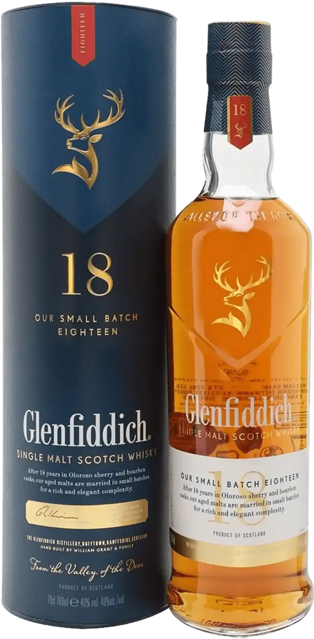 Glenfiddich 18 Years Old– исключительный, односолодовый виски 18-летней выдержки, который производится небольшими партиями, созревание проходит в традиционных американских бочках из-под бурбона и бочках из-под хереса Oloroso, благодаря чему напиток приобретает свои уникальные характеристики. Виски смешивается в специальных деревянных чанах, где наполняется богатым букетом выдержанных вкусов. Самый известный в мире односолодовый виски Glenfiddich создается на винокуренном заводе Glenfiddich Distillery, принадлежащем независимой семейной компании William Grant & Sons. Компания была основана Вильямом Грантом в 1886 году и сегодня его традиции продолжает уже пятое поколение семьи. Продукты William Grant & Sons известны во всём мире, они продаются более чем в 180 странах. Glenfiddich производится в Хайленде, рецепт этого напитка не менялся с самого создания, для его изготовления используется кристально чистая вода из природных источников, выдержка производится в старинных дубовых бочках, где напиток приобретает свои неповторимые характеристики. Glenfiddich постоянно подтверждает репутацию лучшего односолодового виски в мире, получая большое количество престижных профессиональных наград. Glenfiddich 18 Years Old в новой элегантной упаковке – это идеальный подарок для ценителей высококачественного виски.