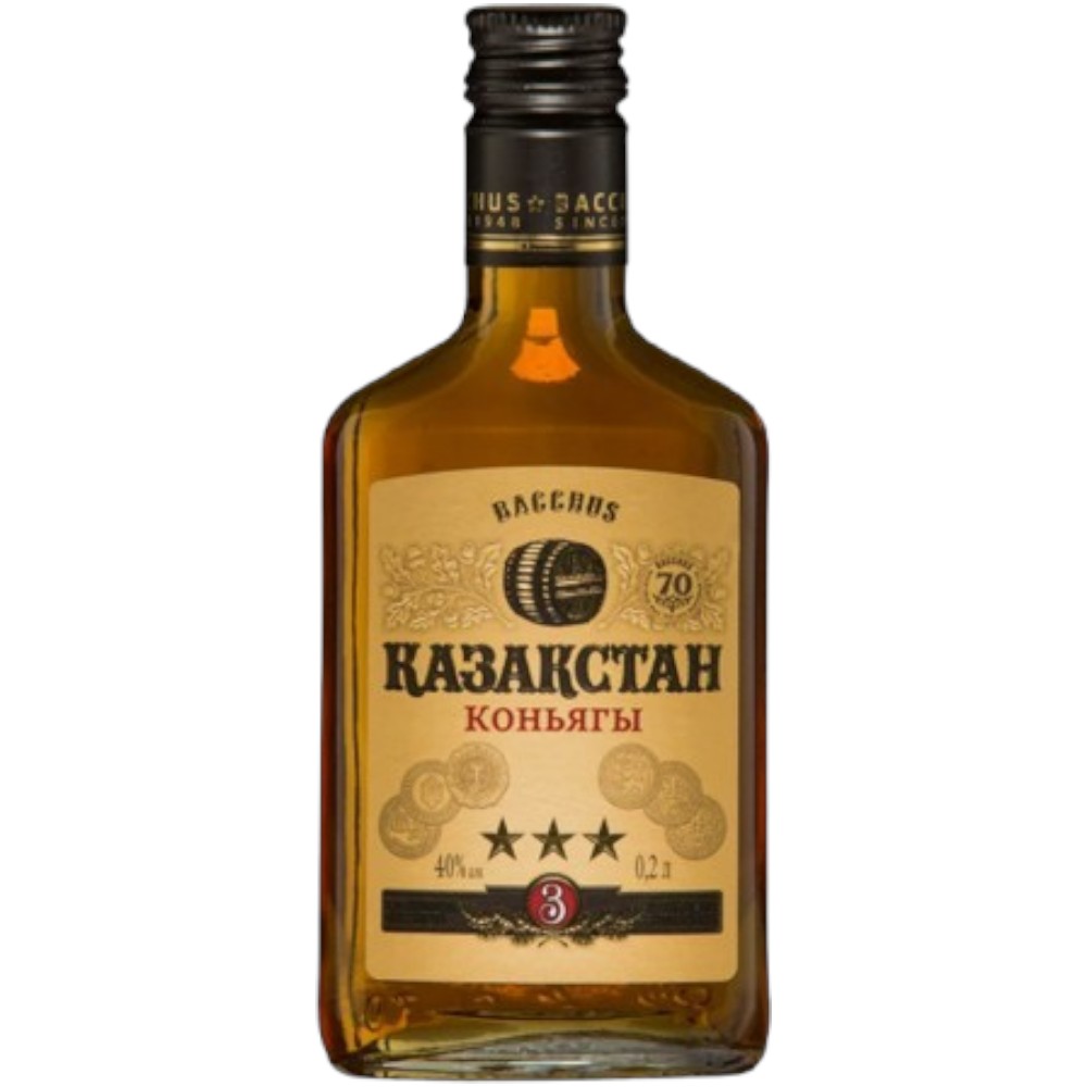 Коньяк казахстанский пятилетний Bacchus — выдержанный крепкий алкогольный напиток, произведённый в Казахстане с использованием классической технологии купажной дистилляции и многолетней выдержки в дубовых бочках. Бренд Bacchus ассоциируется с традиционными ремесленными методами, сочетая качественное сырьё, выдержку и мастерство купажа для создания напитка с выразительным характером и округлым вкусом.