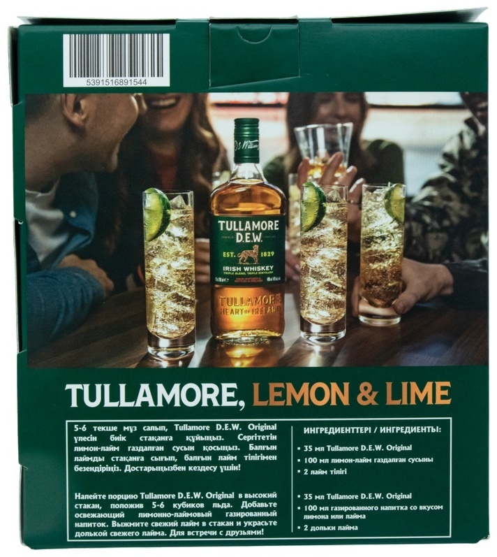 “Tullamore D.E.W” — оригинальный виски, который известен во всем мире благодаря своему мягкому аромату и нежному вкусу. Виски выдерживается в бочках из-под бурбона и из-под хереса, срок выдержки составляет от 3 до 7 лет. За последние 10 лет этот напиток завоевал 22 золотые медали, был удостоен звания “лучший ирландский смешанный виски”.“Tullamore D.E.W” — один из самых популярных в мире ирландских виски. История этого легендарного напитка берет свое начало в 1829 году, когда в городе Талламор была построена винокурня Tullamore. Завод расположился в самом богатом сельскохозяйственном регионе графства Оффели, где выращивался прекрасный ячмень, и находились источники родниковой воды. Таким образом, у производителя были все ингредиенты для создания первоклассного виски. “Tullamore Dew” получил свое название по инициалам одного из его создателей – Daniel E. Williams: DEW.Сегодня виски “Талмор Дью” выпускается компанией Cantrell & Cochrane, которая внесла большой вклад для того, чтобы легендарным напитком наслаждались во всём мире и по сей день. “Талмор Дью” продолжает следовать своим великим традициям, он является одним из известнейших лейблов, популярных во всём мире. “Tullamore Dew” продается более чем в 80 странах мира.