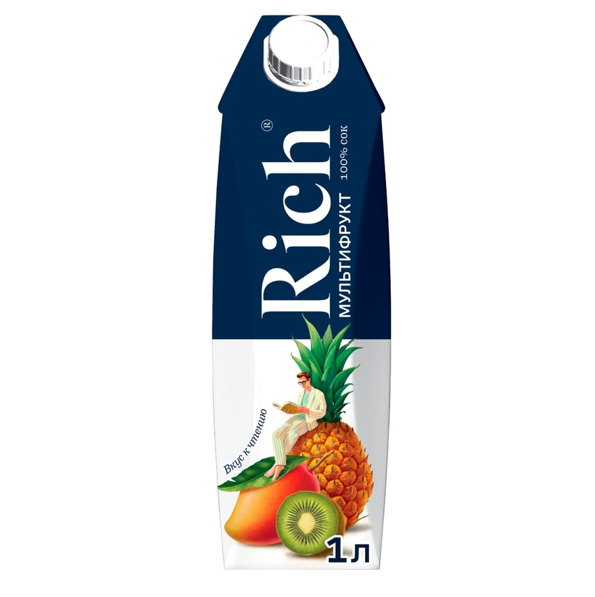 Rich — это премиальный бренд соков, нектаров и фруктовых десертов, выпускаемый компанией “Мултон” с 2002 года. Поэтому практически сразу после своего появления бренд занял уверенные позиции на российском рынке. Великолепный вкус и высокое качество продукции “Rich” неоднократно подтверждалось многочисленными наградами. Яркий взрыв неповторимого тропического вкуса ананаса, киви, манго, банана и других не менее полезных фруктов соединились в упаковке мультивитаминного сока “Rich”, вкусно утоляющем жажду.