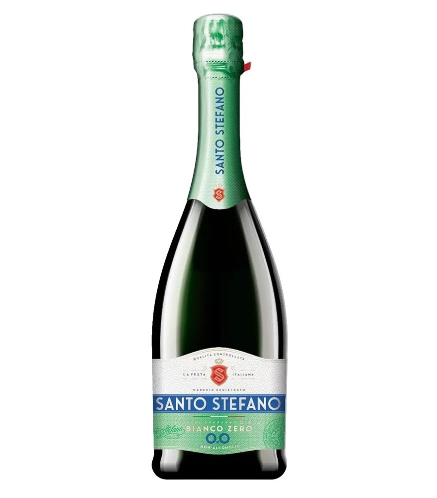 Santo Stefano» Bianco Zero — безалкогольный игристый напиток светлого соломенного цвета с деликатно сладким, фруктовым вкусом и утонченным ароматом муската, идеален для употребления в течение дня, совместим с фруктами и десертами, создан под контролем итальянских специалистов с минимальным калорийным содержанием.